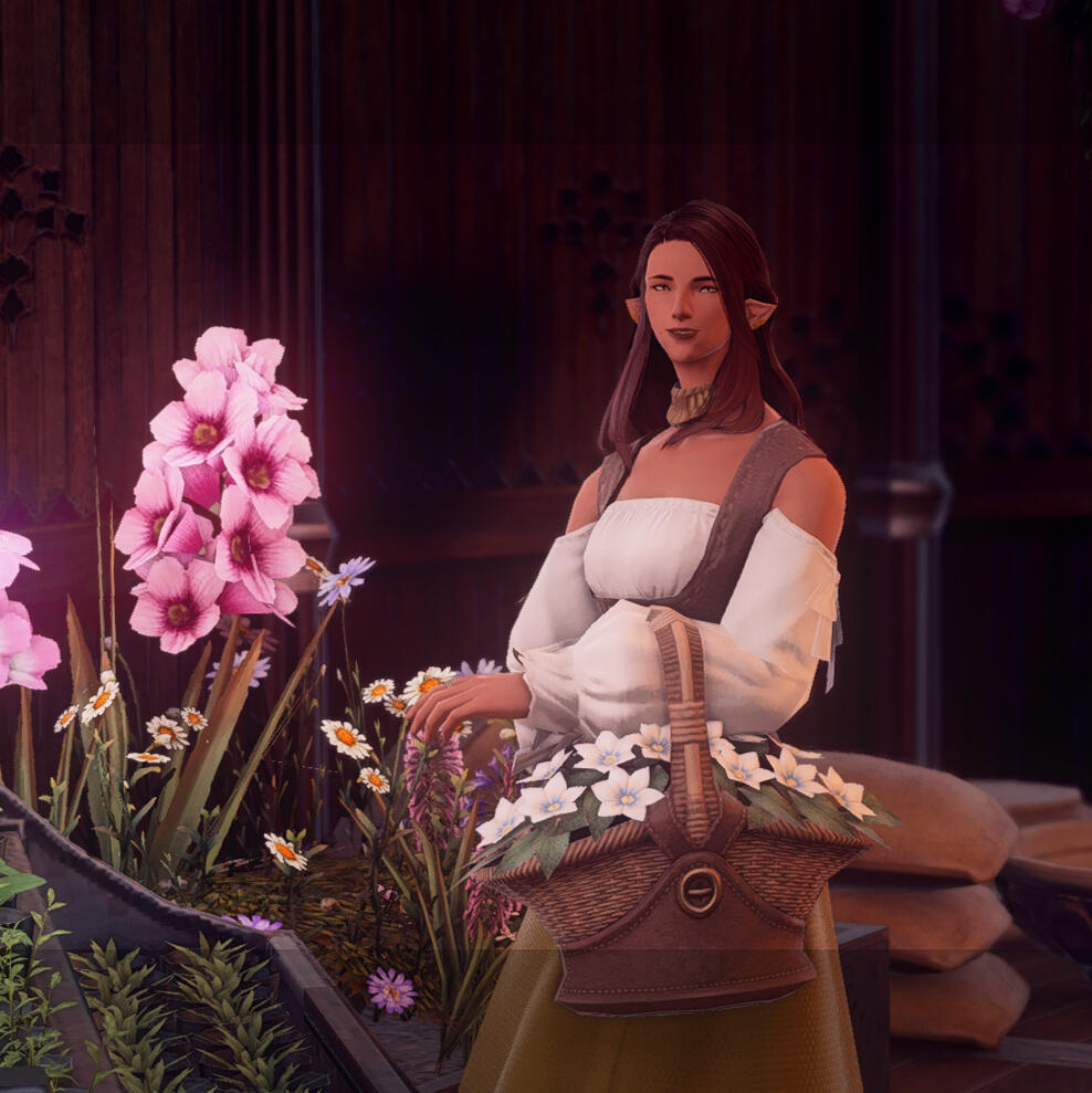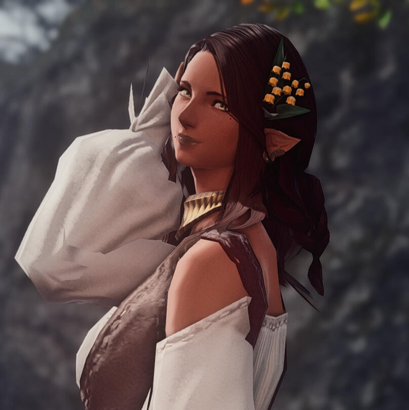 Born and raised in the Black Shroud, Margeaux's known the forest for her whole life. Her father was a carpenter and her mother was a botanist, leaving her plenty of projects to aid with growing up. She followed in her mother's footsteps with joining the guild, where she slowly worked her way up from selling plants to researching, learning, and ultimately compiling studies on the Black Shroud's flora.Her parents passed in a carriage accident travelling through the North Shroud just shy of her twentieth nameday. Margeaux became a stalwart member of the Botanist Guild thereafter, practically adopting all of its members as her family.A handful of years later, she met her husband, Anatole, while passing the Rosewood stalls to the guild. They soon married and bought a house in the Shroud, where they raised their only son, Elouan. Margeaux spent the rest of her years as a mother, researcher, and wife, up until recently.Nowadays, Margeaux's still found working at the Botanist Guild, but there's no ring to be had on her finger.